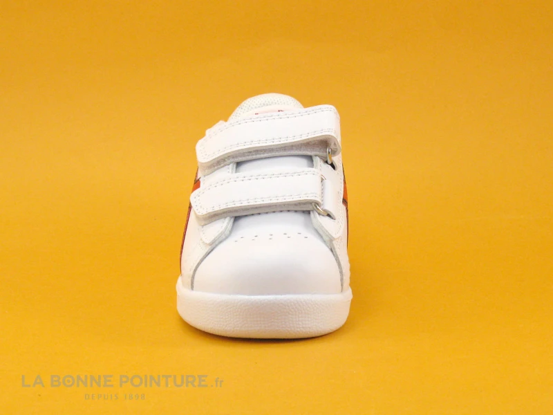 Cette basket garçon Diadora Game à petit prix est en simili cuir blanc, avec des bandes rouges sur les côtés et une partie bleu marine à l’arrière.