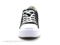 Le lacet rond noir passant à travers 6 oeillets vous permettra de régler le bottillon à votre pied.