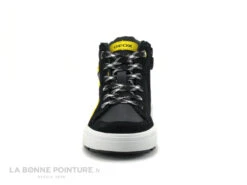 Cette basket basse Geox est bleu marine, avec un peu d’orange à l’arrière et sur la languette.