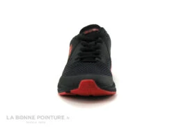 Cette basket noire pour fille ou garçon est principalement en textile aéré noir, avec un peu de bleu turquoise et d’orange flashy.