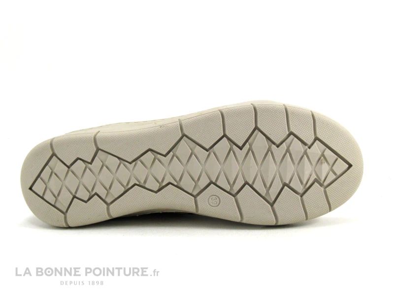 Un élastique marron foncé côté extérieur donne de l’aisance dans cette chaussure Femme adaptée pieds larges.