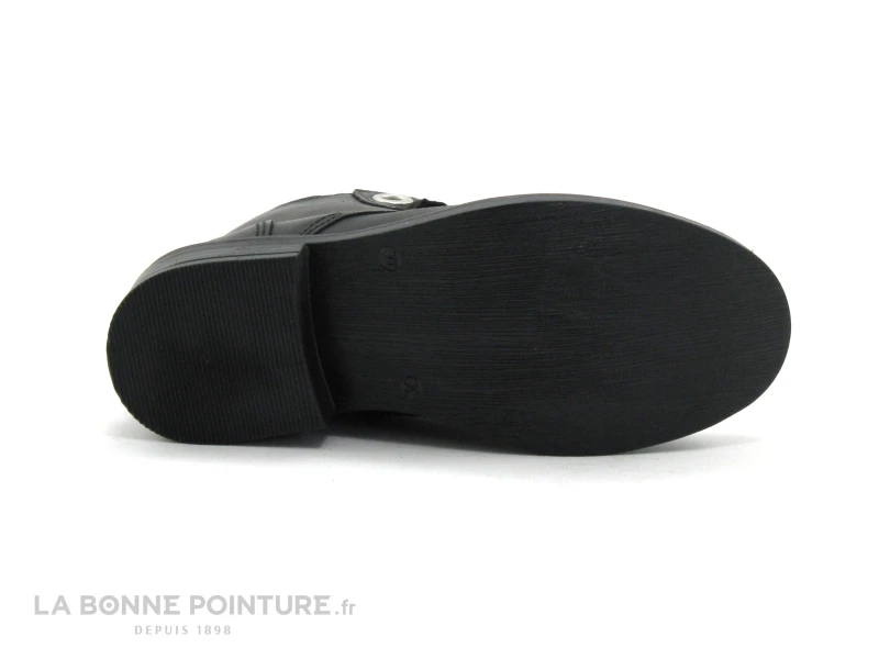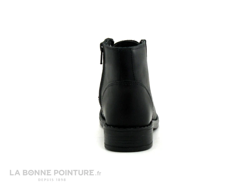 Ces boots enfant sont en cuir lisse noir, avec la pointe en cuir velouté brillant.