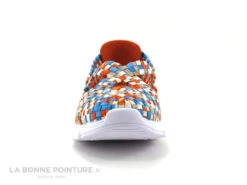 Fermeture efficace des baskets Homme Morans Sofian avec le lacet plat bleu, qui traverse 6 oeillets dont 1 métallique.