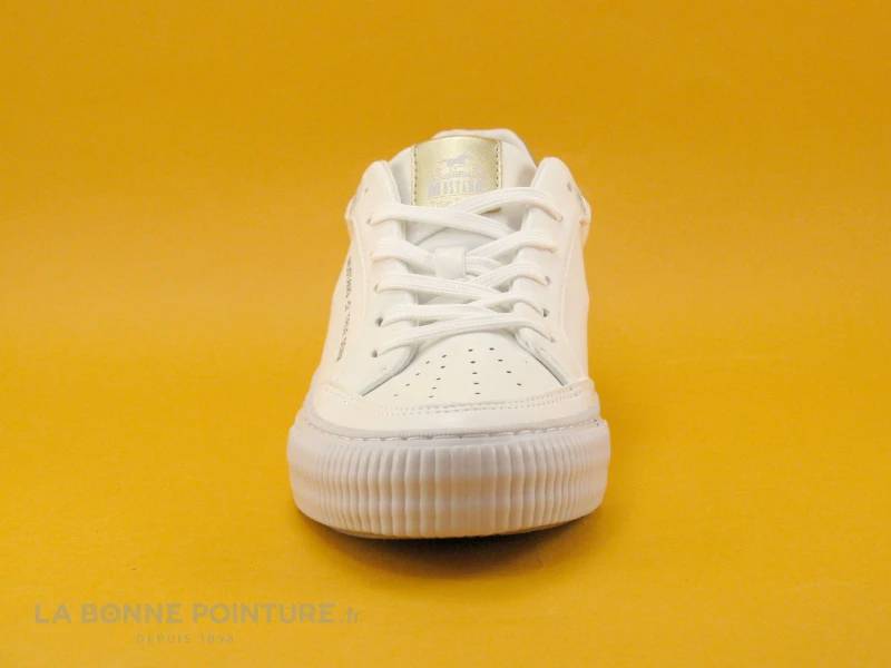 Le lacet blanc se faufile à travers 6 oeillets pour fermer efficacement la chaussure Mustang Femme.