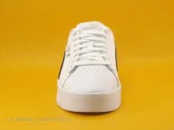 La marque Puma s’affiche à l’arrière des baskets, sur la petite languette bleue qui aide à enfiler la chaussure.