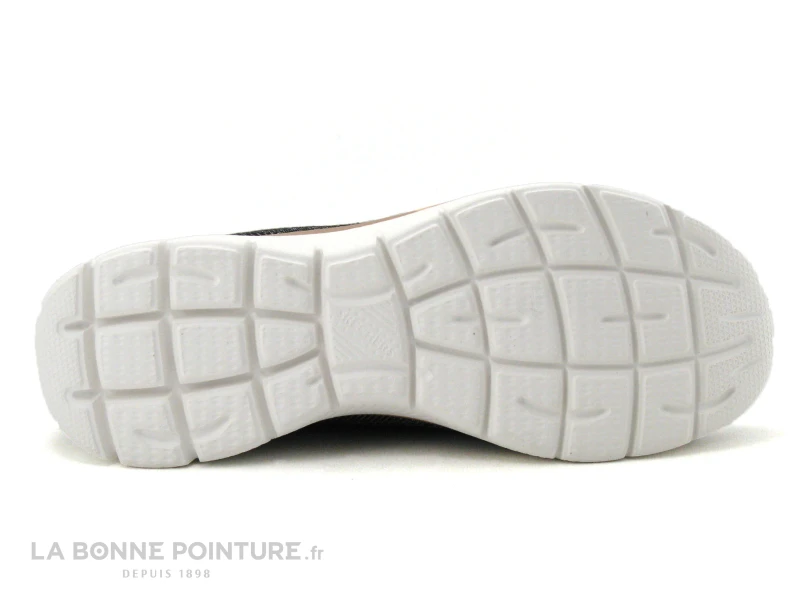 Pas de fermeture, la basket Femme noire Skechers Summits s’enfile en un clin d’oeil ! Elle est ornée d’un lacet élastique noir et rose gold sur le dessus.
