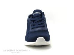 Ces belles baskets de ville Homme Skechers Uno Stacre 52468 sont bleu marine, avec des parties aspect grainé et velouté qui caractérisent la chaussure.