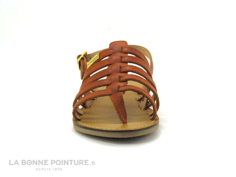 Voici de jolis nu-pieds spartiates Les Tropéziennes par M. Berlarbi Herilo en cuir orange, avec des lanières parallèles qui assurent un bon maintien du pied dans la chaussure.